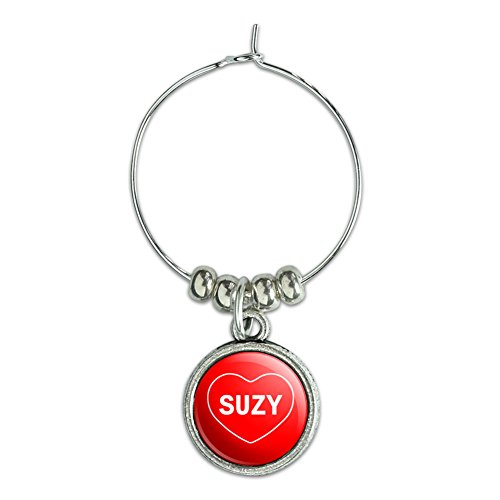 -. Brand : Graphics and More -. Feature : Unique and functional super awesome wine/drink charm / Includes the urethane encased design on both sides of the metal charm / Approximate size of charm is 15mm / Charm is sold individually / Sorry, wine is not included. :-) -. Label : Graphics and More -. Manufacturer : Graphics and More -. ProductGroup : Kitchen -. ProductTypeName : KITCHEN -. Publisher : Graphics and More -. Studio : Graphics and More -. Title : Wine Glass Charm Drink Marker I Love Heart Names Female S Stef