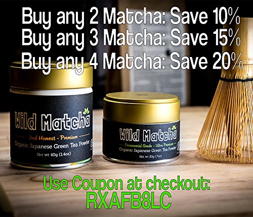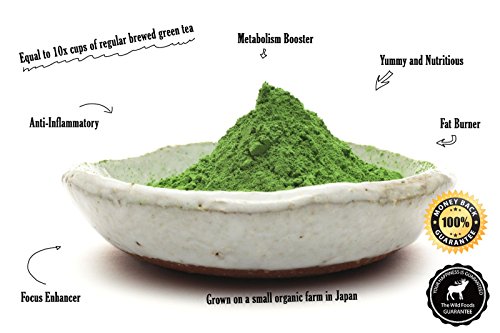 -. Binding : Grocery -. Brand : Wild Foods -. Feature : Among the highest quality matches in the world - Wild Matcha is Non-GMO, Gluten-Free, Organic, Pesticide Free, Shade Grown, JAS Organic Certified, Kosher and Vegan Friendly! Wild Matcha is an Antioxidant Powerhouse Superfood. One cup of Wild Matcha is equal to 10 cups of regular brewed green tea in antioxidant and nutritional value! / Fat Burner and Metabolism Enhancer: Wild Matcha contains polyphenols ECGG, a thermogenic ingredient known to boost metabolism. Not only do you get the antioxidant benefit from consuming Wild Matcha, but you also get fat-burning and metabolism boosting! Polysaccharides help regulate blood sugar levels. The powerful antioxidant catechin found in matcha have a powerful anti-inflammatory effect. / Natural Mood and Energy Enhancer - Wild Matcha contains caffeine, which is released into the bloodstream slowly providing a healthy and sustained boost of energy, mental focus and clarity! Boosts Metabolism and helps burn calories all day! The amino acid L-Theanine does numerous beneficial things for the body, including the production of alpha brain waves, which makes it great for working and studying! / Stock up and save! Buy more Wild Matcha, or any other Wild Foods products, and save automatically at checkout! / Wild Matcha is backed by the 100% Money-Back Wild Guarantee! Buy this Superfood Green Tea Matcha with confidence! -. IsAdultProduct : 0 -. Label : Wild Foods -. Manufacturer : Wild Foods -. ProductGroup : Grocery -. ProductTypeName : GROCERY -. Publisher : Wild Foods -. Studio : Wild Foods -. Title : Organic Matcha Green Tea From Japan, Wild Matcha, Ultra-Premium And Authentic Japanese Matcha Grown In The Mountains of Kyoto, Japan, Ceremonial Grade, JAS Certified Organic