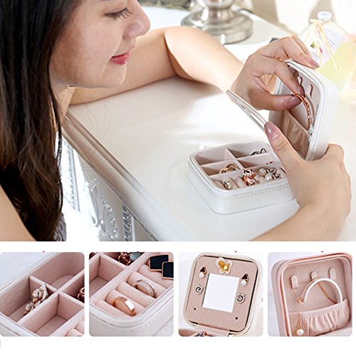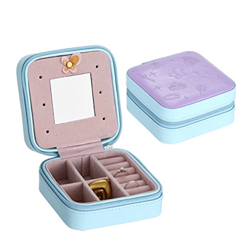 SuperB2C Female Small Faux Leather Travel Jewelry Box Storage Case for Rings Earrings Necklace (Blue)