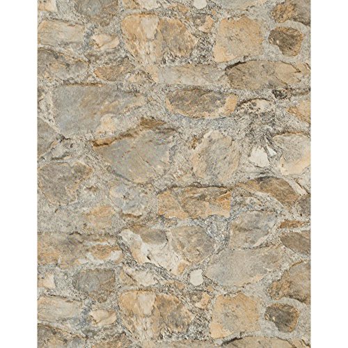 York Wallcoverings PA130904 Weathered Finishes Field Stone Wallpaper, Oyster Shell Grey/Concrete Grey/Graphite Grey