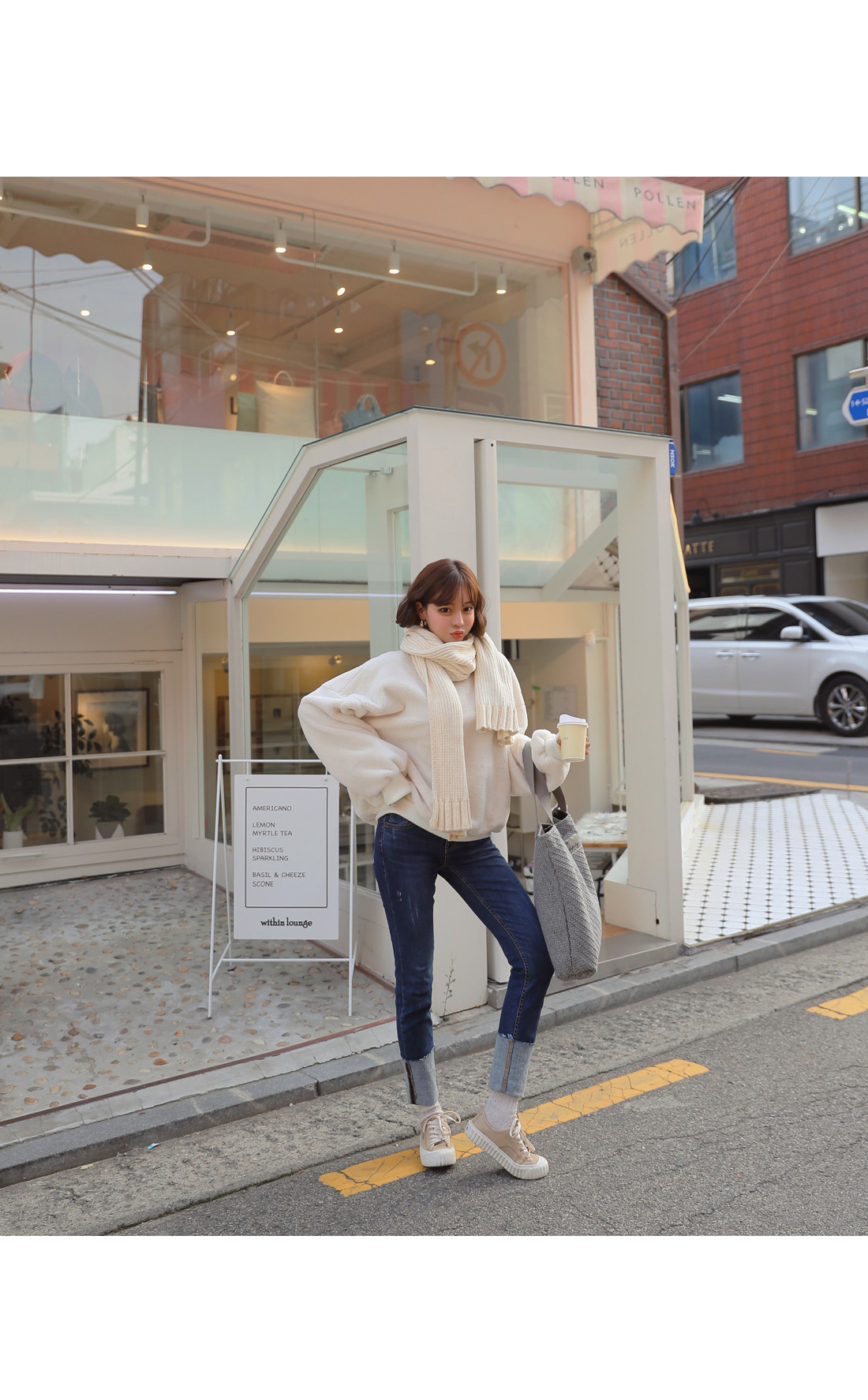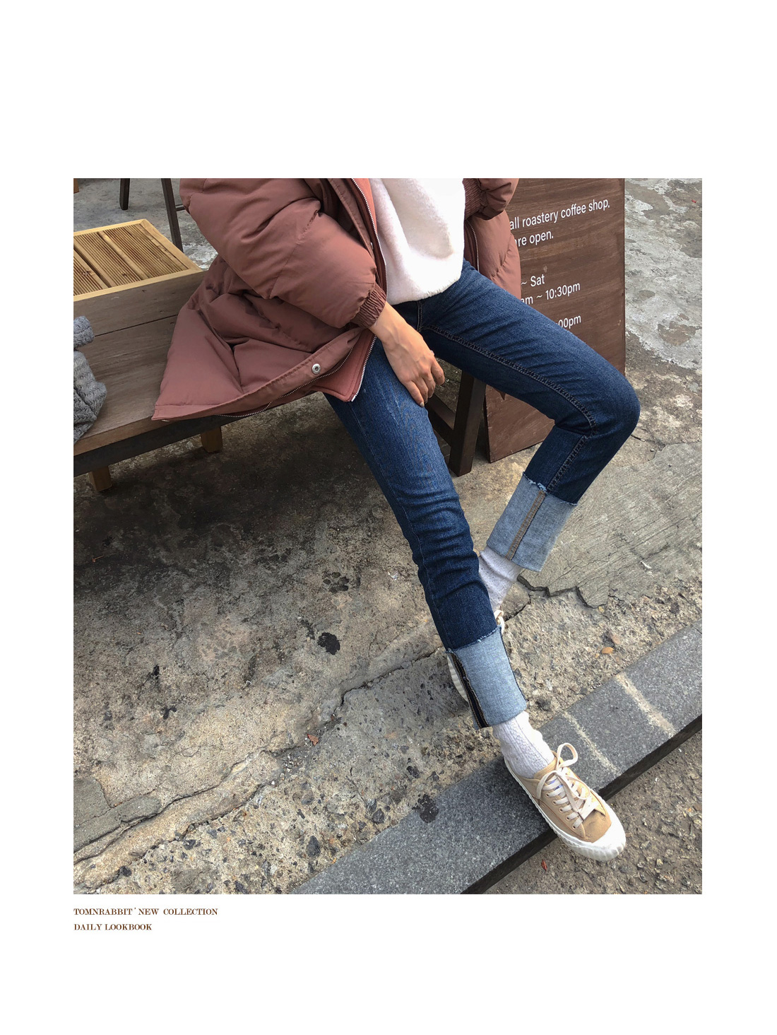 밑단 롤업 디테일로 전체적인 포인트를 더해주었으며