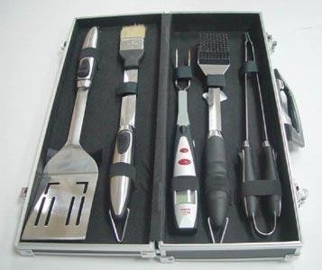 - Feature : Stainless steel and rubber grilling tool set by Maverick / Set includes: spatula, tongs, basting brush, RediFork Pro Thermometer, grill brush and tool case / Made of stainless steel for durability, rubber handles for sure grip / Tools feature hanging loop for added convenience / Conveniently store in handy tool case; holds all essential tools for easy transport