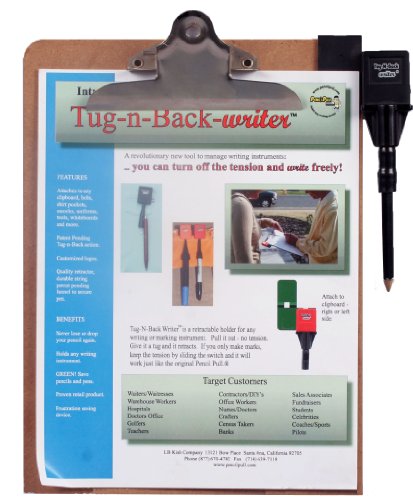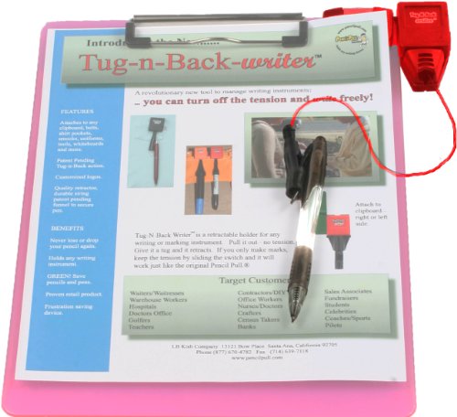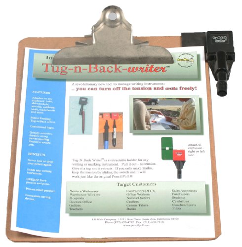 Pencil Pull Retractable, Holder for Writing Instruments Mounted on Clipboard, Tug-N-Back Writer, Retractable, No String Tension, 1 Holder (T200CB)