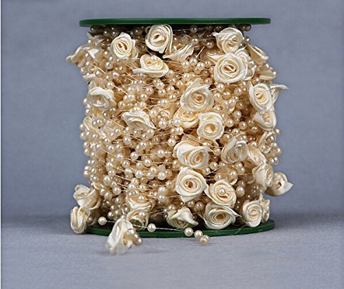 Blogger 30m/100feet Cream Rose Flower Pearl Beads String Garland Wedding Centerpiece Party Decoration Crafting DIY Accessory for Party Garland...