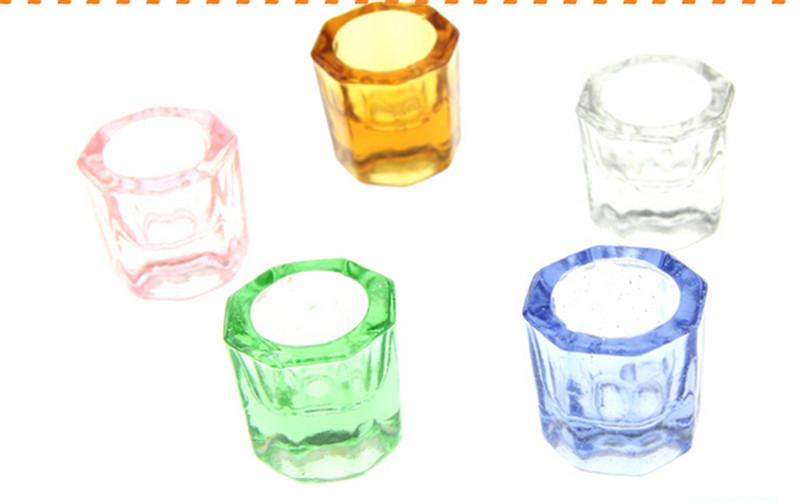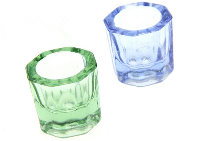 Fill acrylic liquid / acetone into crystal glass dappen dish / cup for acrylic nail art work.