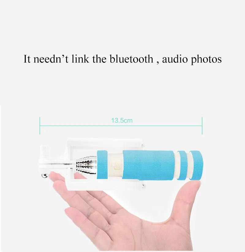 Mini portable extendable selfie monopod stick no bluetooth no battery, new mini monopod camera cable take pole 2062