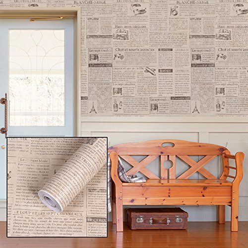 -. Title : SimpleLife4U Retro Beige Newspaper Shelf Drawer Liner Removable Contact Paper for Countertops Peel Stick 17.7 Inch by 13 Feet