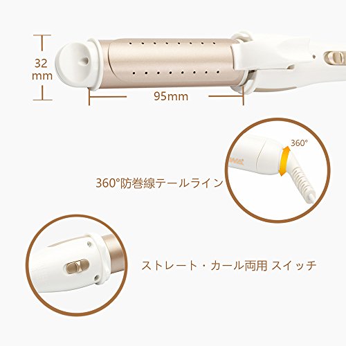 원본상품명: RIWA ヘアアイロン ストレトカル用 マイナスイオン 乾濡れ用 海外 32mm(ホワイト 配 シャンペン色)