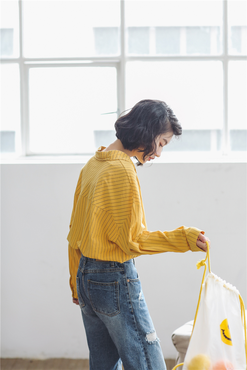 程よくゆったりとしたデザインなので動きやすく、細めのストライプはすっきりとトレンドライクな印象に仕上げてくれます。