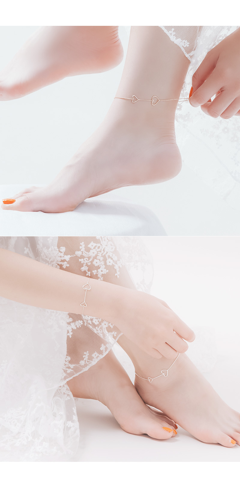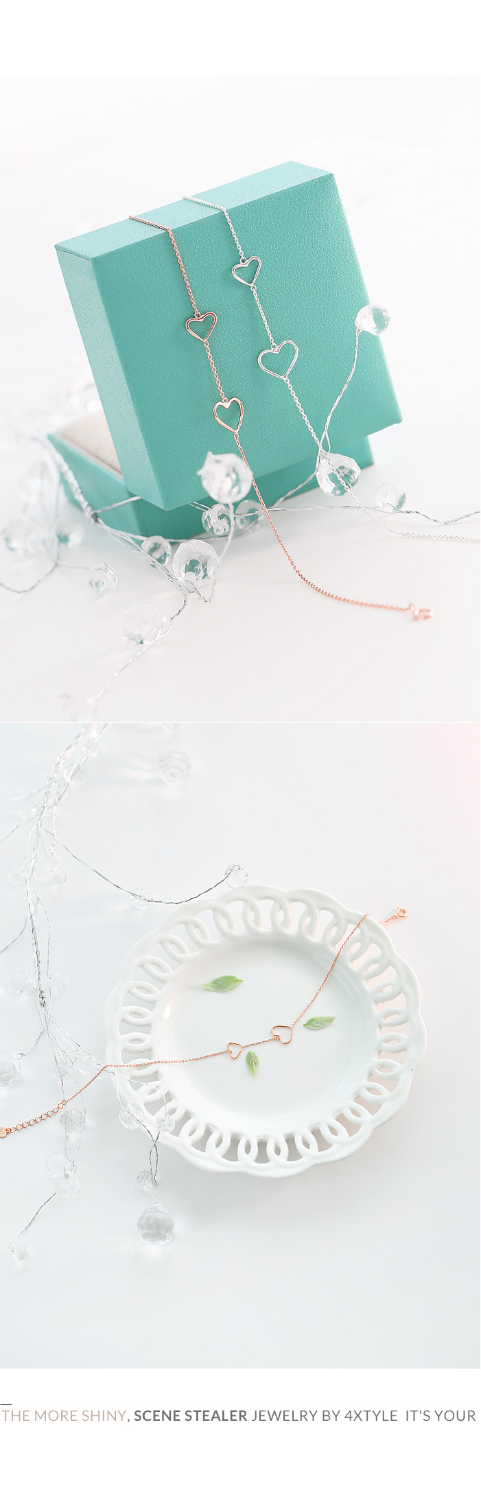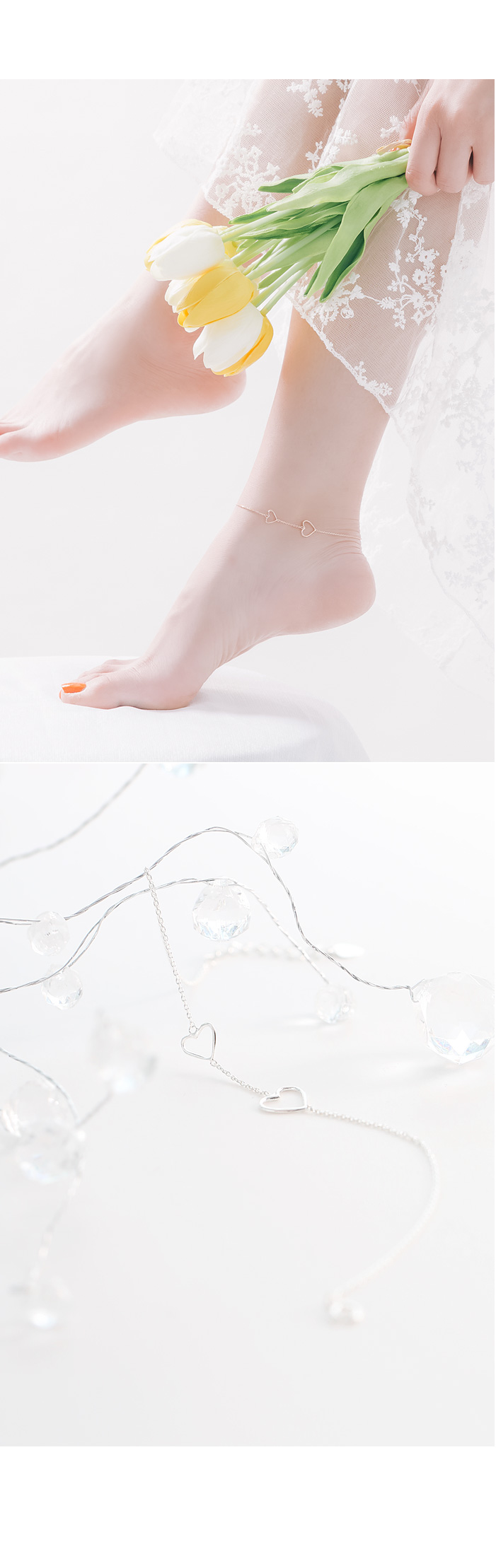 팔찌와 발찌는 2개의 하트가 한방향에서 다 보이도록 디자인되어 더욱 만족스러워요.