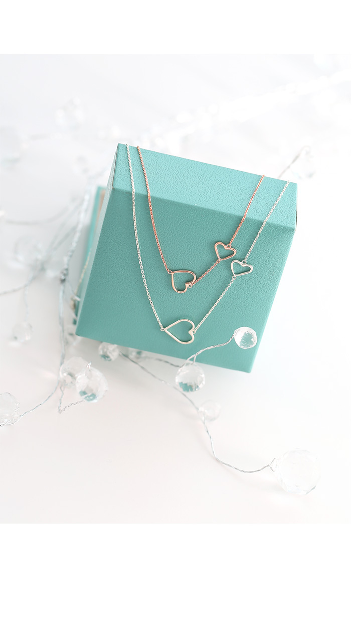 목걸이는 딱좋은 길이감의 40cm로 제작되었는데요, 목이 얇으신 분들의 경우 체인과 이어진 하트 펜던트가 있어