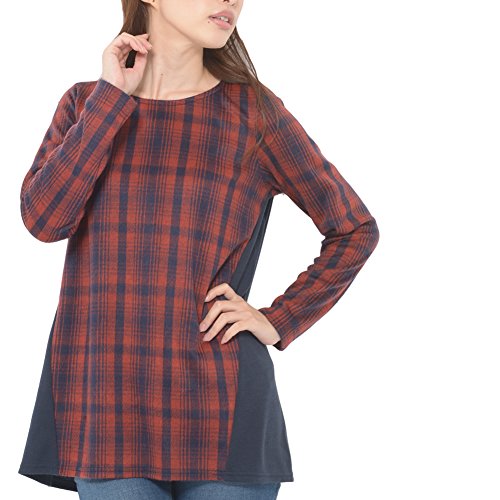 -. Title : カットソー 日本製 レディース トップス 長袖 チェック ウール混 ジャガード素材 Aライン