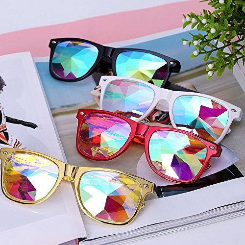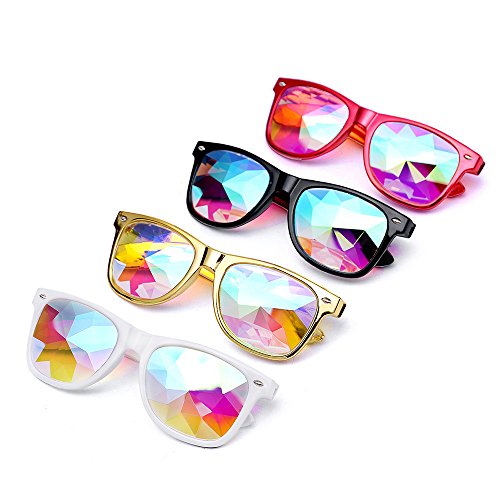 Product DescriptionFeature: ?Material: PC plastic frame ?Type:Kaleidoscope glasses ?Sun-type:Rave/Dance/EDM Sunglasses ?Lens Colour:Various ?Features:Festival, Rave,Party ?Suitable for face shape: Round face,Long face,Square face,Oval shape face