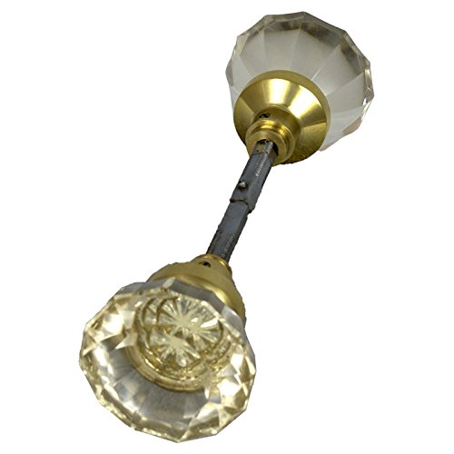 -. Feature : High Quality Glass Door Knob Set (sold as pair only) / Vintage style , made brand new Clear Pressed Glass with solid brass neck or ferrell / Size: 2.25" depth 2 3/8" diameter fit 5/8' rosettes or back plates come with 1/4" split spindle for P.R.Ivacy or passage latch sets / Why search the flea markets and antique shops for non matching sets , when you can get these in any quantity you wish right now ?
