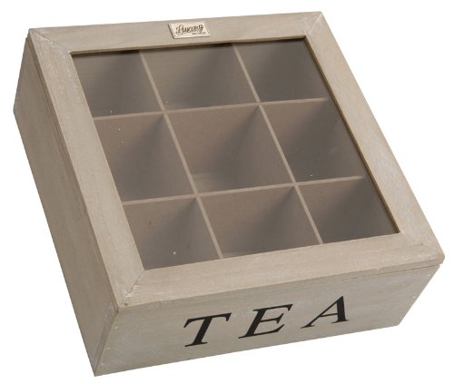 -. Title : Teebox Teekiste Teedose 9 Fächer Landhaus Holz - 24x24cm