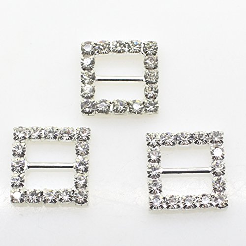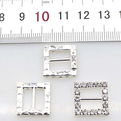 50pcs 15mm Silver Square Shaped Rhinestone Buckle Slider for Wedding Invitation Letter
