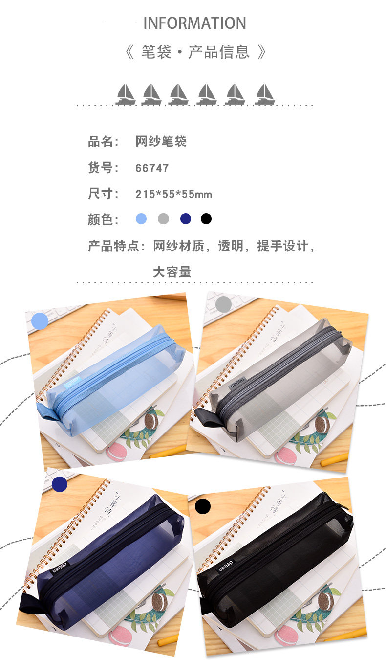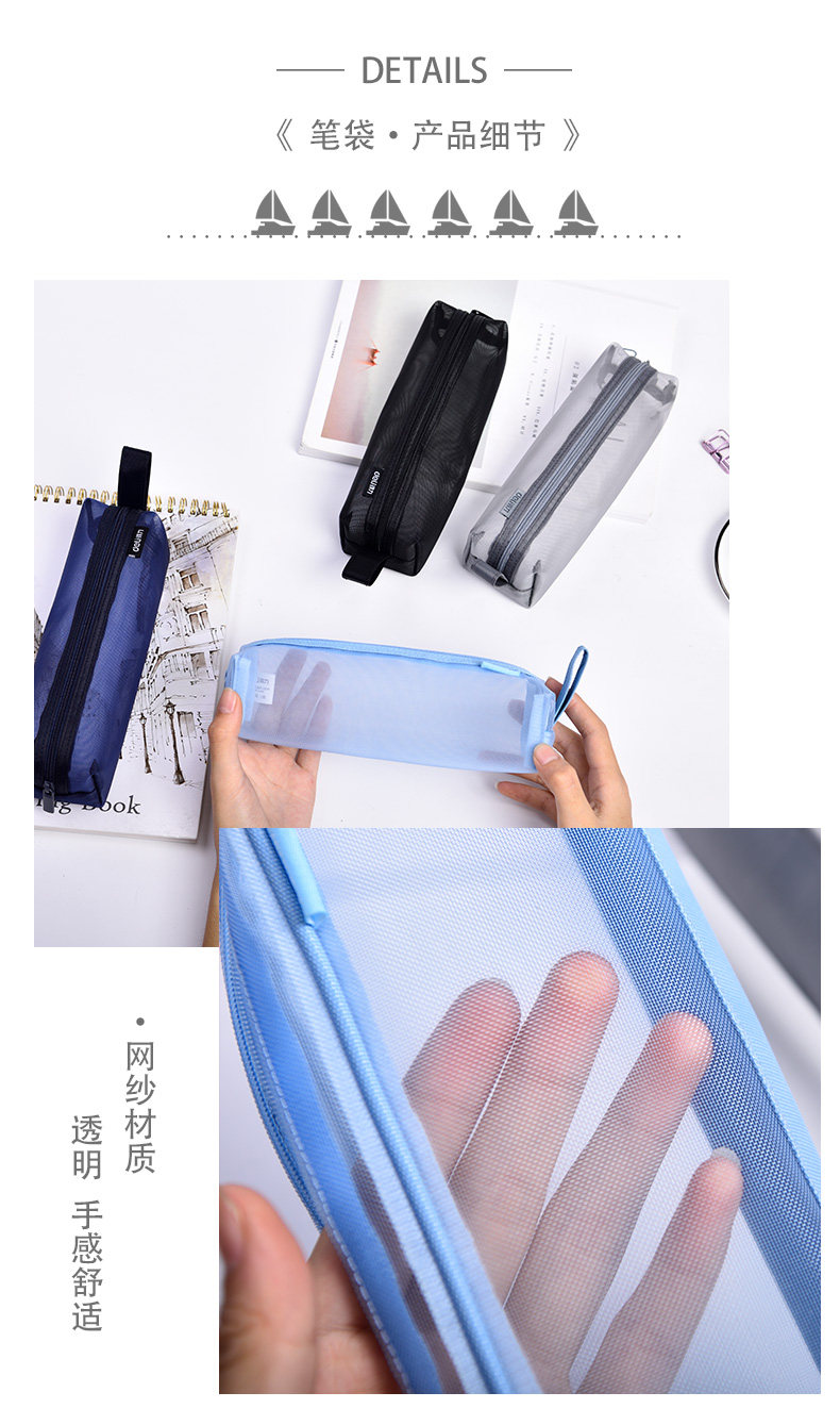 透明简约笔袋 学生用考试专用文具袋 男女生小清新网纱铅笔袋