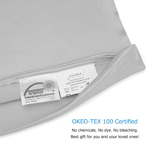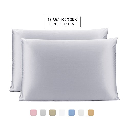 OleSilk 100% Mulbery Silk Pillowcase with Hidden Zipper for Hair and Skin Beauty,Both Sides 19mm Charmeuse Gift Box 2pcs - Silvergrey, Standard