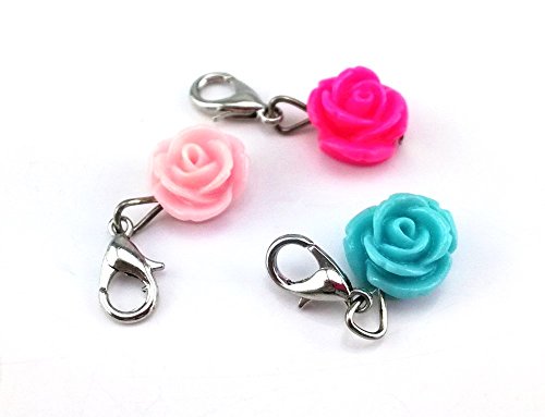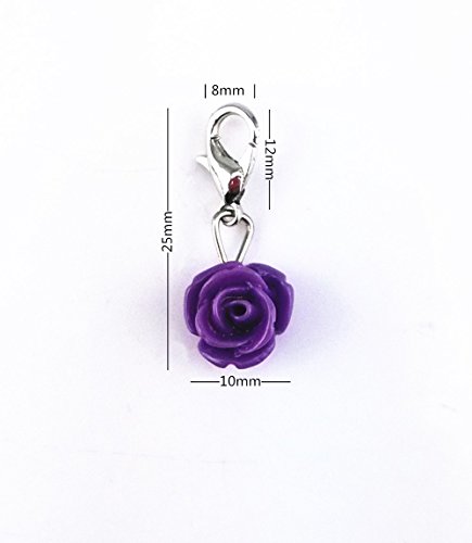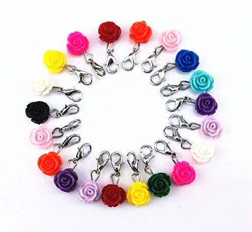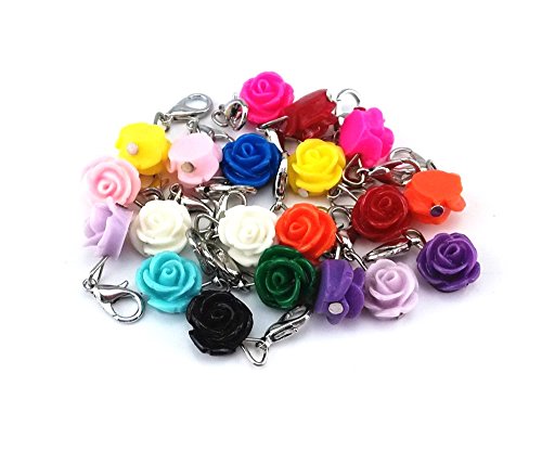 yueton 20pcs Assorted Color Rose Dangle Charms Pendant with Lobster Clasp Jewelry Making Accessory Fit Floating Locket Charms Necklaces