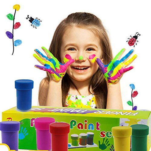 CONTEND-Set includes 6 different colors of fingerpaint set, Plastic bottles. Different colors mixed can create beautiful colors.” kids paint””paint for klids”