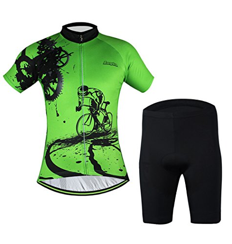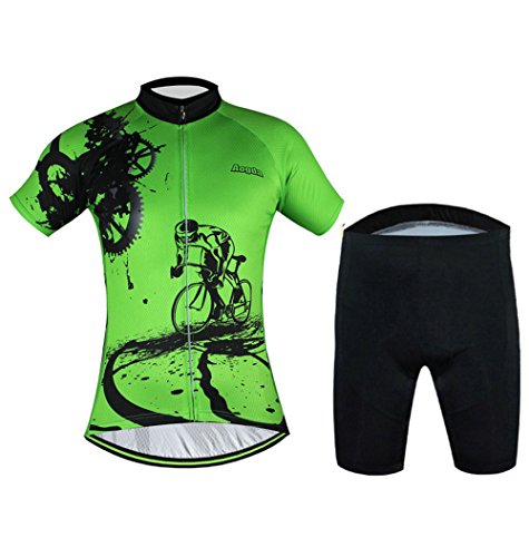 Aogda Men Cycling Jerseys Yellow Shirts Breathable Quick Dry Jacket Short Sleeves Suit 2017 Team Cycling Clothing White (Green Suit, 3XL)