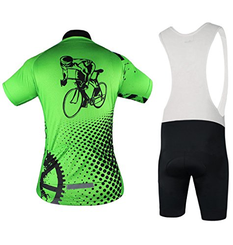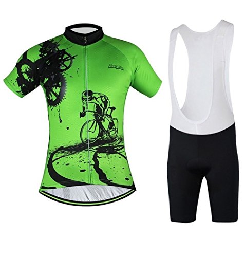 Men Cycling Jerseys Yellow Shirts Breathable Quick Dry Jacket Short Sleeves Suit 2017 Aogda Team Cycling Clothing White (Green Bib Suit, 2XL)