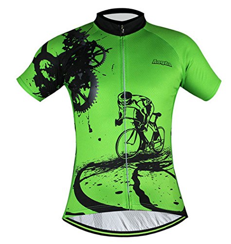 Men Cycling Jerseys Yellow Shirts Breathable Quick Dry Jacket Short Sleeves Suit 2017 Aogda Team Cycling Clothing White (Green Jerseys, L)