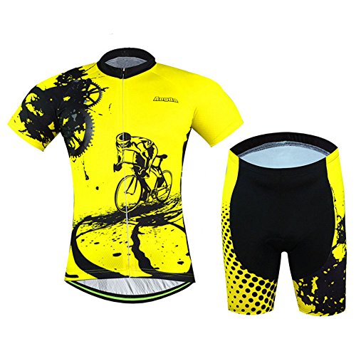 Men Cycling Jerseys Yellow Shirts Breathable Quick Dry Jacket Short Sleeves Suit 2017 Aogda Team Cycling Clothing White (Yellow Bib Suit, M)