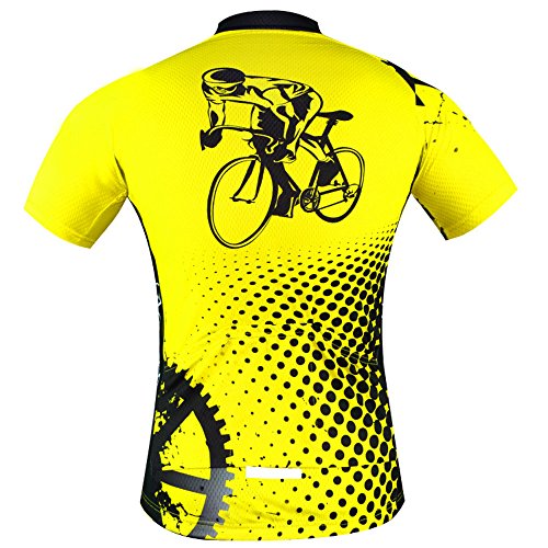 Men Cycling Jerseys Yellow Shirts Breathable Quick Dry Jacket Short Sleeves Suit 2017 Aogda Team Cycling Clothing White (Yellow Jerseys, 3XL)