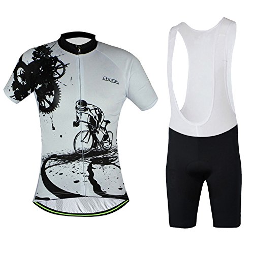 Men Cycling Jerseys Yellow Shirts Breathable Quick Dry Jacket Short Sleeves Suit 2017 Aogda Team Cycling Clothing White (White Bib Suit, 2XL)