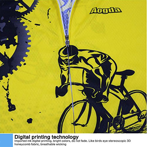 Men Cycling Jerseys Yellow Shirts Breathable Quick Dry Jacket Short Sleeves Suit 2017 Aogda Team Cycling Clothing White (Yellow Jerseys, M)