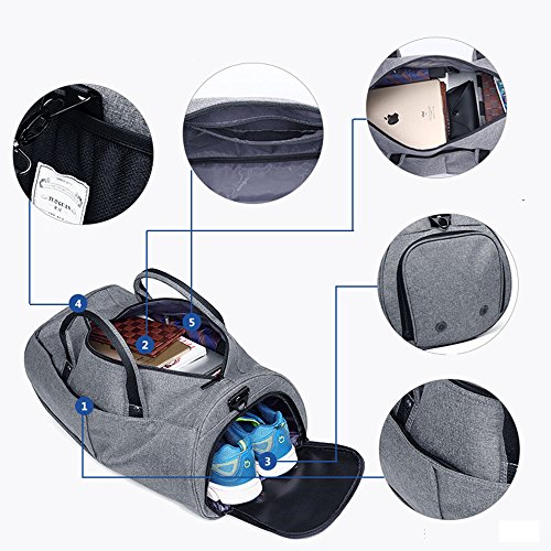 Product Description Specifications Material: High quality Snowflake Fabric Dimension: 18.9x10.2x10.2in Color:grey,black Weight:2.2lb Main features Large capacity main bag:you can put many items into the travel buffel bag ,also put laptop and personal items. High Quality Accessories:electroplating hardware zipper,and you can get a smooth zipper experience. Design of hand-held rivets:the hand-head strap can be used for a long time Package: 1x one Travel Duffel Bag .