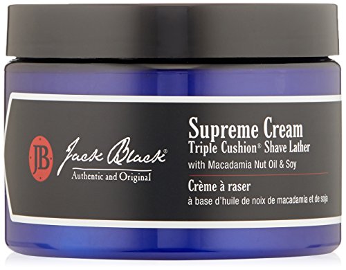 -. Binding : Health and Beauty -. Brand : Jack Black -. EAN : 0682223010310 -. Feature : Triple Cushion Technology an advanced blend of Macadamia Nut Oil, Glycerin and Soy that allows super close razor glide and a hydrating cushion of protection against razor burn, nicks and cuts. / Macadamia Nut Oil and Jojoba Oil penetrate tough whiskers and hydrate the skin. / Soybean Oil and Glycerin soften and protect skin. / Certified Organic Edelweiss and Plant ago Leaf Extracts act as antioxidants and enhance collagen synthesis. -. IsAdultProduct : 0 -. Label : Jack Black -. Manufacturer : Jack Black -. Model : 682223010310 -. MPN : 1031 -. NumberOfItems : 1 -. PackageQuantity : 1 -. PartNumber : 1031 -. ProductGroup : Prestige Beauty -. ProductTypeName : LUXURY_BEAUTY -. Publisher : Jack Black -. ReleaseDate : 2017-04-24 -. Studio : Jack Black -. Title : Jack Black Cream Triple Cushion Shave Lather -. UPC : 682223010310