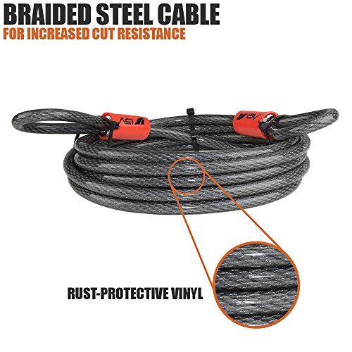 BV 15FT Security Steel Cable, Double Looped Flex Lock Cable 3/8 Inch, for U-Lock and Padlock