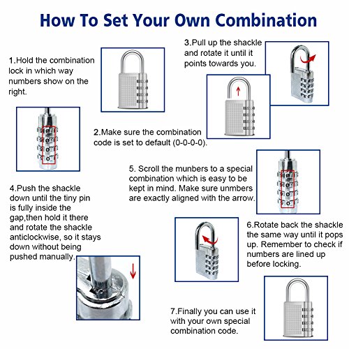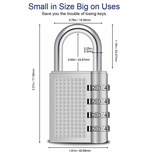 -. Feature : Wide on uses - these locks design for indoor and outdoor use, ideal for most light-duty tasks such as gym/sports, school & employee lockers. / Features: Combination is easy to read,clearly visible; material sturdy, durable and keyless. / Cipher lock material- Be made of zinc alloy and plated steel. Better keep your own belongings. / lage locks Hard to crack & Good Security - 4 digit number combinations, 10,000 combos instead of 3 for added security. / 2 pack - set includes 2 zinc alloy 4-digit resettable combination travel locks