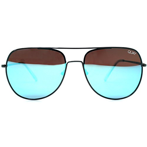 Take this iconic frame on all of your summer festivals. The Living Large festival sunglasses from Quay Australia features a sleek metal rectangular frame with dual upper bridge detail, comfy nose paddings, stainless steel hinge, partial raw-edge lens detail, and blue mirrored flat lens.Feature