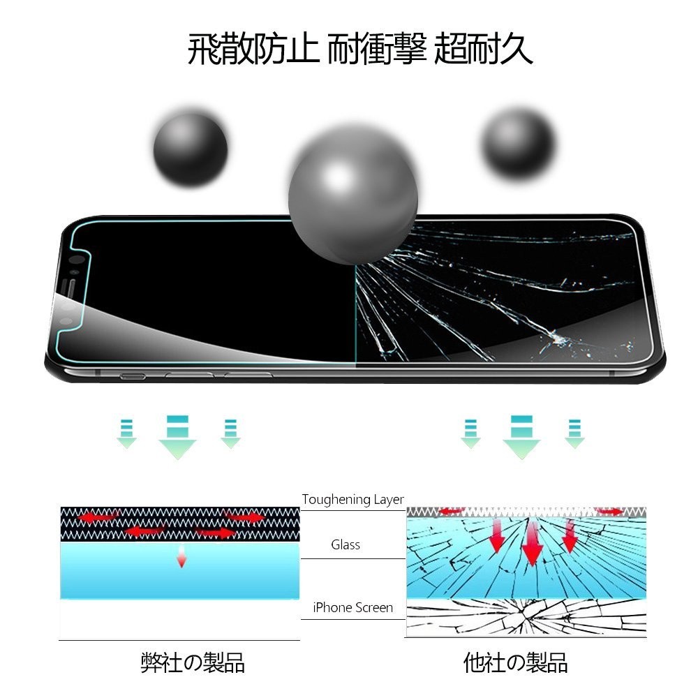 フィルムの縁を丸く研磨処理したラウンドエッジ仕様なので、縁にかかる衝撃が軽減されます。 ぎらつきによる疲労を軽減する、究極に目に優しいガラス。 製造の限界に挑戦、究極の形状設計。 9H硬度を実現した上に飛散防止、耐爆対策ばっちり! iPhoneX ガラスフィルム iPhone8 plus 強化ガラス iPhone7 plus フィルム iPhone8 iPhone7 iPhone X 8plus 7plus 液晶保護 iPhone6s plus iPhone6s ガラスフィル