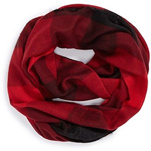 BIG BUDDHA PLAID AND LACE INFINITY SCARF RED