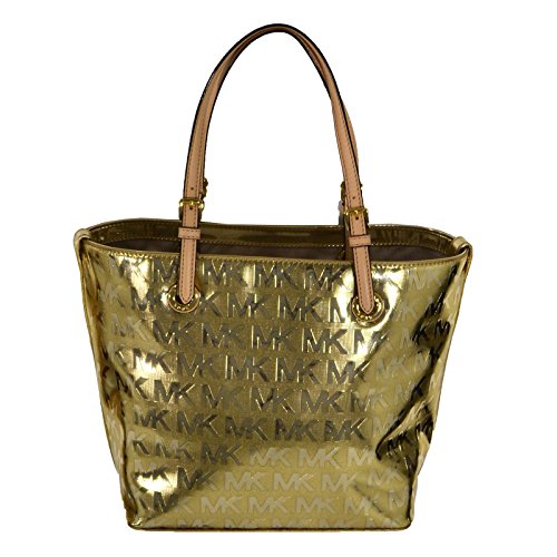 -. Title : Michael Kors Purse Signature Mirror Metallic Grab Bag Pale Gold