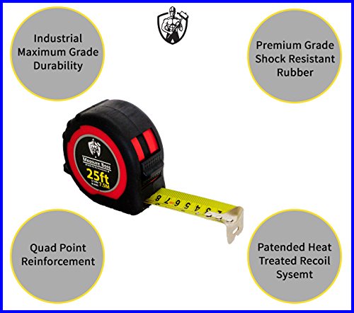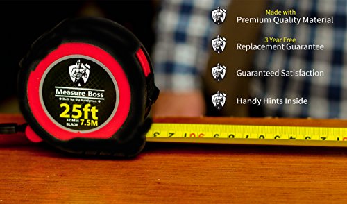 Measure Boss Pro Tape Measure Heavy Duty - 25ft Length 32mm Blade Width For the Serious Handyman