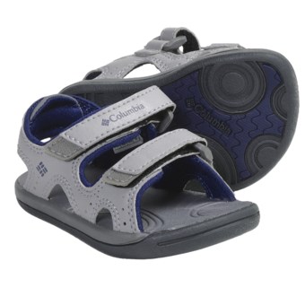 Closeouts. Columbia Sportswear:s Teschun sandals stay on little feet thanks to three touch-fasten straps. Plus, a quick-drying synthetic leather upper and the dependable traction of an Omni-Grip® rubber outsole make them perfect for adventures in water and on dry land. *Quick-dry synthetic leather upper with soft jersey-knit lining *Three adjustable touch-fasten straps *TechLite® molded midsole for lightweight cushioning *Omni-Grip® rubber compound for wet and dry traction *Upper: Synthetic leather *Made in Viet Nam *Visit our Shoe Sizing Guide *US shipments only |