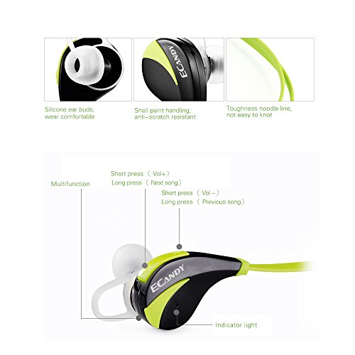 Ecandy BBZ-002 Bluetooth Wireless Over-ear Stereo Earphone with Built-in Microphone for iOS and Android Smartphones - Green