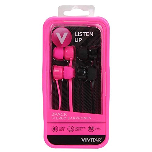-. Title : Vivitar Earphones - Pink/Black (2-Pack)