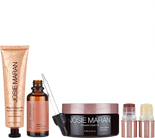 Studio : Josie Publisher : Josie Binding : Misc. Product Description Nourish your skin from head to toe with this ultra-hydrating Josie Maran five-piece set. Treat your skin to some serious hydration with 100% Pure Argan Oil, then add some glow to your skin with Argan Color Stick for a beautiful pop of color on the cheeks. For extra-soft and kissable lips, apply Argan Oil Moisturizing Stick. Give your body some love too with Whipped Argan Oil Body Butter to nourish skin. For even more hydration, follow with Whipped Argan Oil Intensive Hand Cream to moisturize hands. How do I use it: Warm two to five drops of 100% Pure Argan Oil in hands and gently press into skin. Use to moisturize face, treat split ends, or condition cuticles. Massage Whipped Argan Oil Body Butter onto body after bathing or any time skin feels dry or tight. Generously apply Whipped Argan Oil Intensive Hand Cream to dry hands as often as needed. Sweep Argan Color Stick over the apples of the cheeks and blend toward the temples. Apply to lips for a soft flush of hydrating color. Use Argan Oil Moisturizing Stick to moisturize chapped lips, soothe dry skin, tame flyaways, and moisturize dry cuticles. From Josie Maran. Includes: 8-fl oz Whipped Argan Oil Body Butter in Unscented 2.3-fl oz Whipped Argan Oil Intensive Hand Cream in Unscented 1.7-fl oz 100% Pure Argan Oil 0.21-oz Argan Color Stick in Irresistible 0.21-oz Argan Oil Moisturizing Stick 0