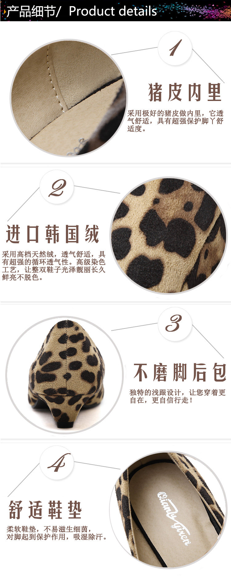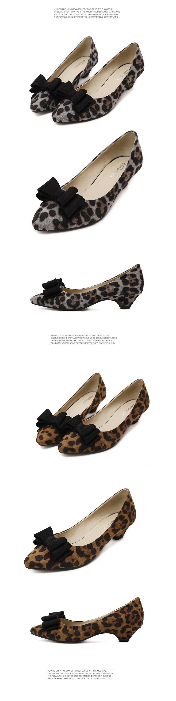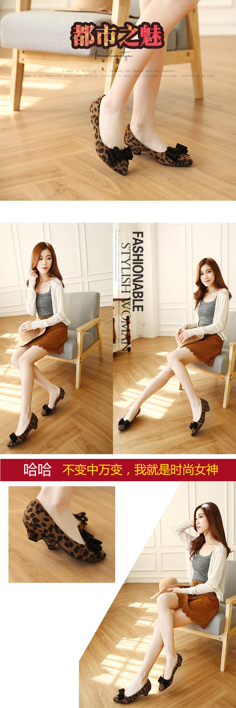 2016春季新款尖头浅口中跟女单鞋蝴蝶结韩版豹纹低跟职业上班女鞋