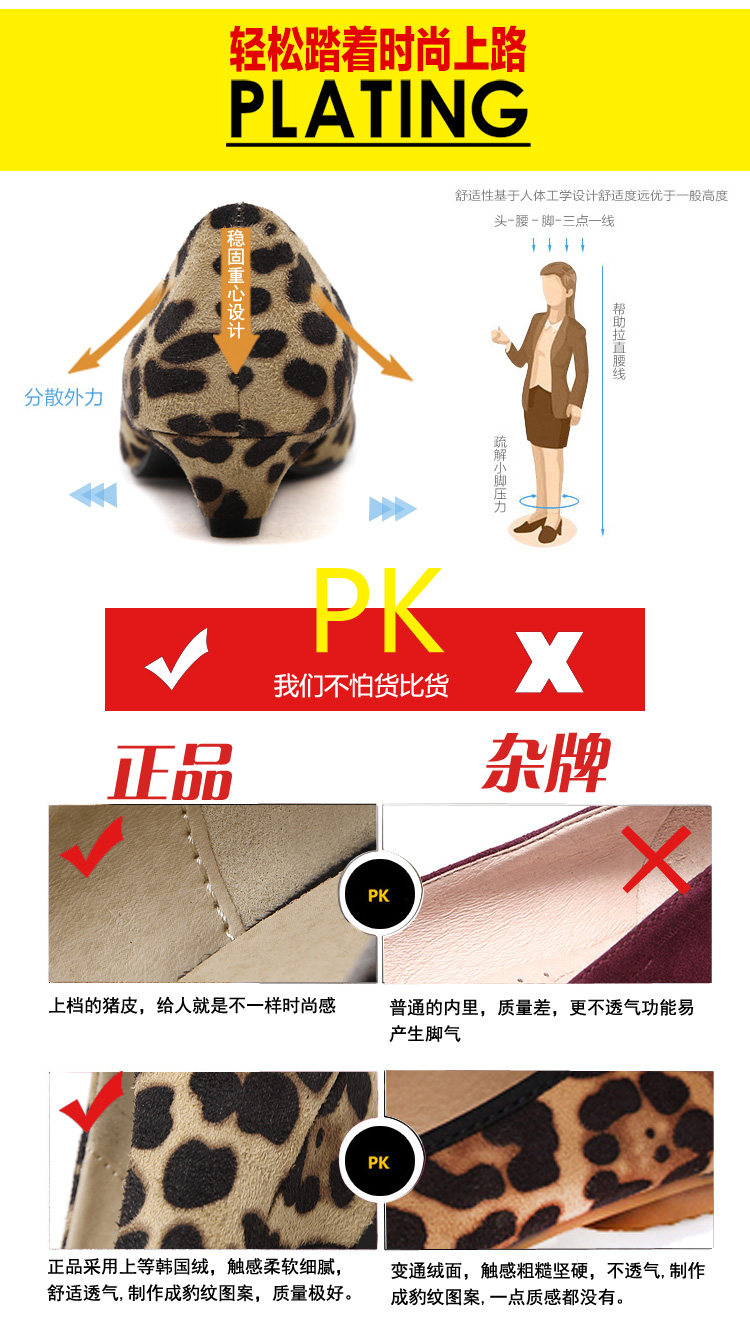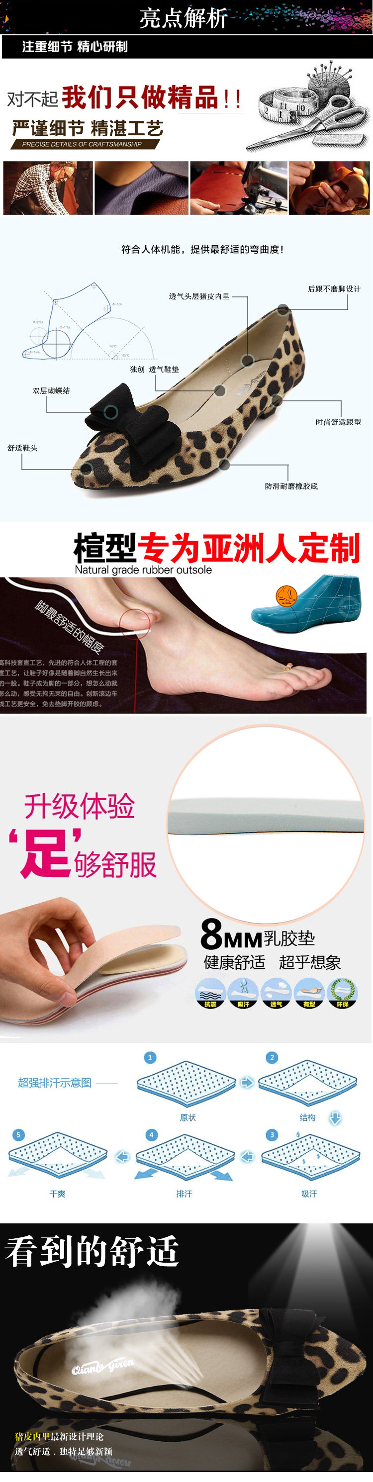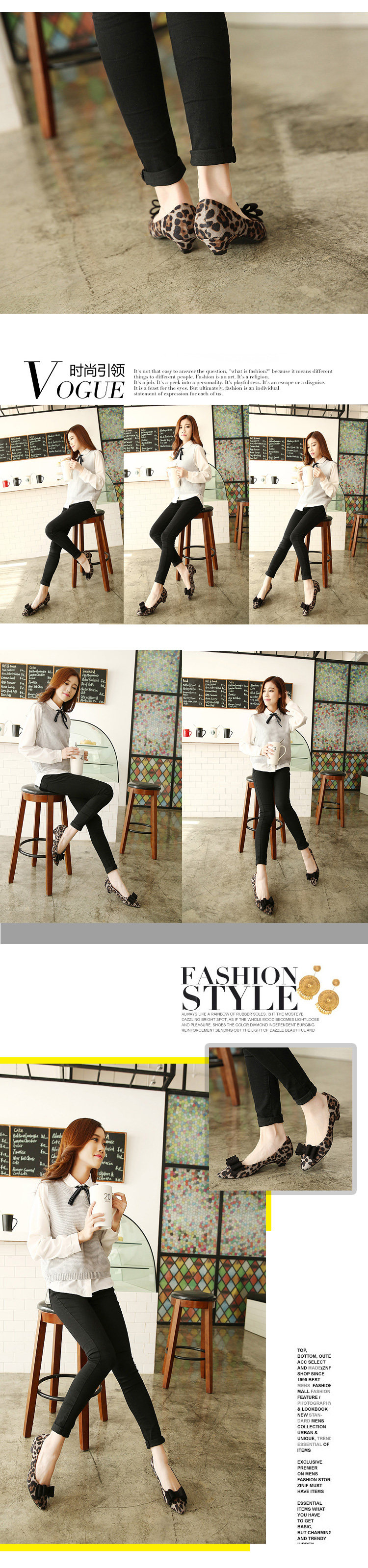 2016春季新款尖头浅口中跟女单鞋蝴蝶结韩版豹纹低跟职业上班女鞋