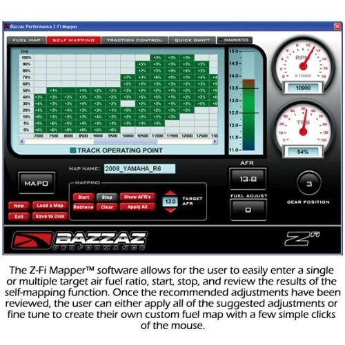 Studio : Bazzaz Publisher : Bazzaz Binding : Automotive Product Description Control your air/fuel ratio from fuel injectors to improve horsepower, torque, and throttle response. Correct fuel delivery for maximum performance, especially after modifications such as an aftermarket exhaust. The Bazzaz Z-Fi Fuel Control Unit takes operational command of all fuel injectors, not just half like competitors. This is a significant advantage in realizing the perfect tune, resulting in significantly better throttle response and overall engine performance. Z-Fi is a plug and play unit that piggy-backs onto the stock ECU. Each unit comes with an application specific harness that utilizes OEM connectors for simple installation. Stores two modifiable fuel maps, one pre-programmed for specific bike with a slip-on exhaust. 0