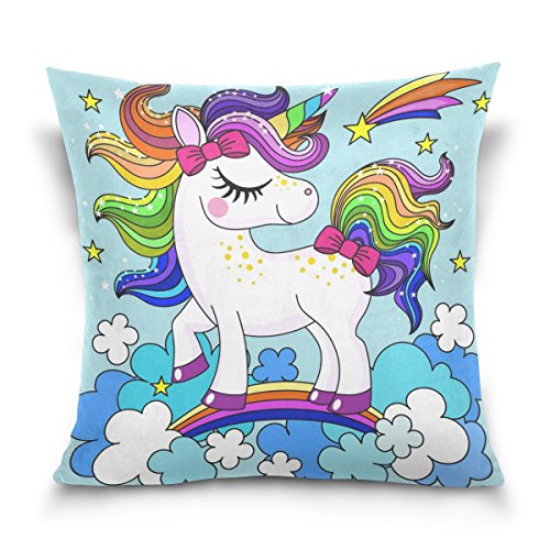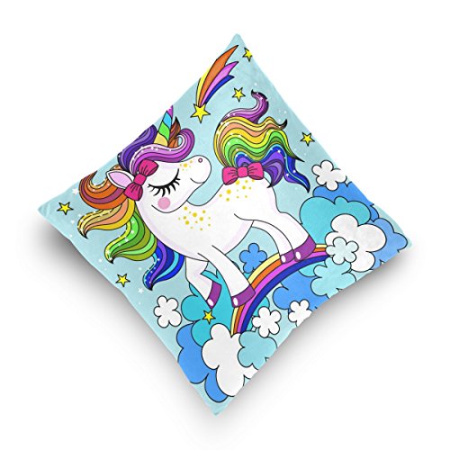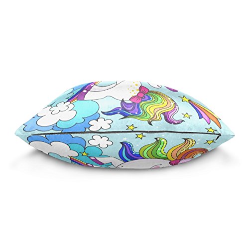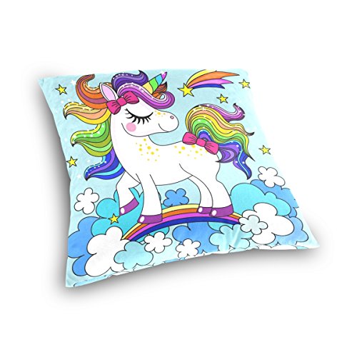 1.Pattern: Cute Cartoon Rainbow Unicorn Clouds Printed Cotton Velvet Custom Throw Pillow Case. 2.Material:Made of 50% Cotton,50% Polyester,Double-sided Printing. 3.Unique design:Hidden Zipper closure on bottom for easy removal of insert. 4.High-points:Soft to touch, easy to wash and dry fast. 5.Using Place:Wide applications,perfect for home decoration(bed,couch,sofa,or chair),car decoration,hotel,cafe decor,and everyday use as it will create a warm and holiday mood wherever they are placed. Great gift idea for friends,a lover,boyfriend,girlfriend,husband or a wife.