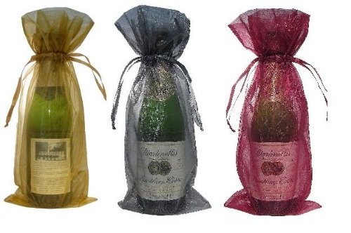 30x Organza Wine Bottle Bag Gold & Silver & Burgundy