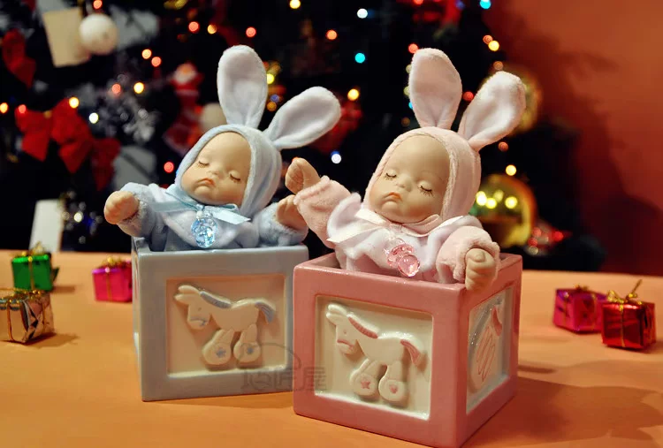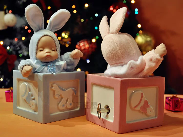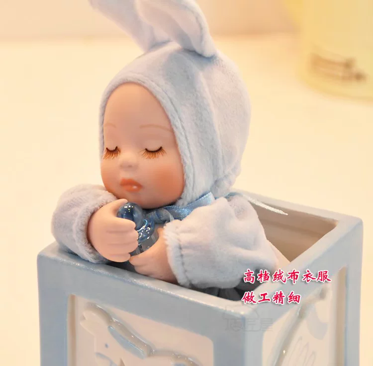 Craftsman house popular gift - Bobblehead Music Box! Baby workmanship, super Meng super cute! Small velvet doll clothes, pink soft, comfortable feel, doll's head with the feet are made ​​of ceramic Oh! Adorable baby lazy, eyes closed, dozing, pacifier hanging around his neck on it ... Immediately after the spring behind the music, the music sounded, lazily around her upper body will swing! Kind more beautiful! Not to be missed a little cute! There are models wearing blue dress with baby boy! Pink, blue Renninxuan!